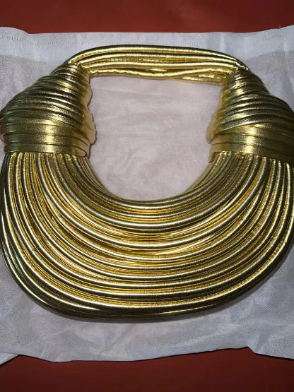 The Gold Luxury Rope Clutch strikes the perfect balance between sophistication and bold style. With a modern design and a sleek metallic gold finish, it stands out for its elegant twisted rope handle — a chic nautical-inspired detail that adds unique charm. Perfect for evening events, parties, and special occasions, this clutch brings together luxury, style, and functionality in one stunning accessory. Though compact, it offers just enough space for your essentials and is crafted from high-quality materials that ensure long-lasting shine and durability. Whether carried by hand or worn over the shoulder, this clutch instantly elevates any outfit with a glamorous touch.